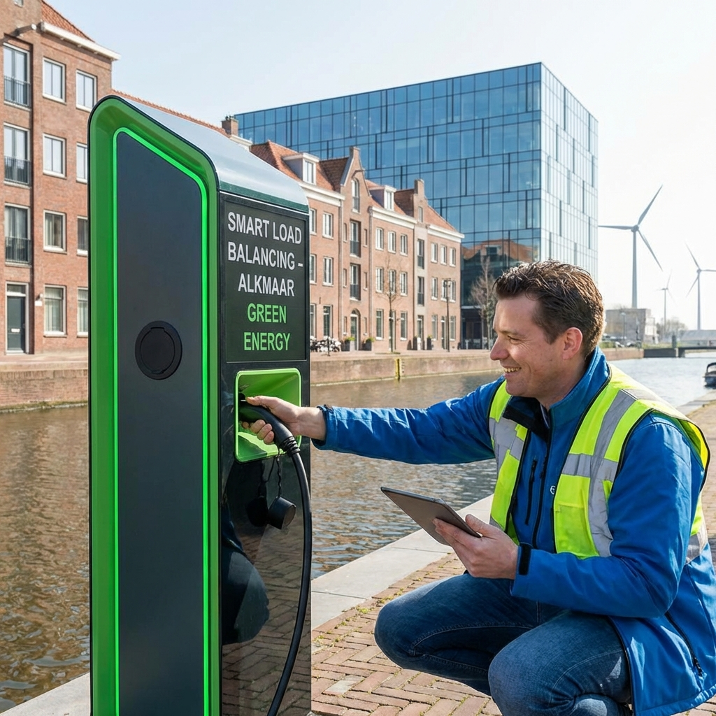 Laadpaal met load balancing: optimaliseer duurzaam laden van elektrische voertuigen Efficiënt laden: voorkomt overbelasting van het net met meerdere laadpunten. Veiligheid: vermij
